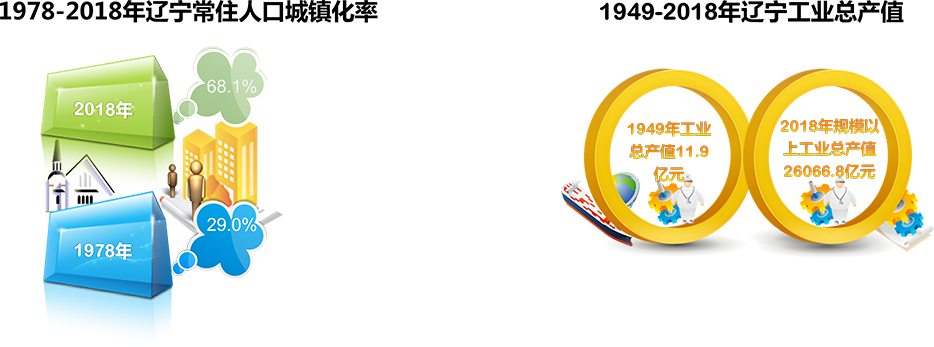 建国初期,辽宁在百废待兴中艰难起步,全省地区生产总值由1952年的41.4亿元增加到2018年的25315.4亿元,按可比价格计算,是1952年的213.5倍。